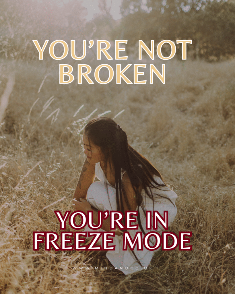 Studies have shown that people experiencing trauma or chronic stress often exhibit signs of tonic immobility – a freeze response similar to animals playing dead when escape isn’t possible (Föcker et al., 2020; Terpou et al., 2022). You’re not absent. You’re shielded.